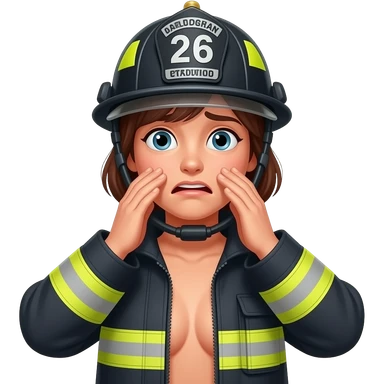 Firefighter woman full naked body and embarrassed emoji