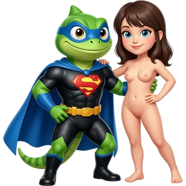 Japnese Lizard superhero saves a full body naked woman emoji