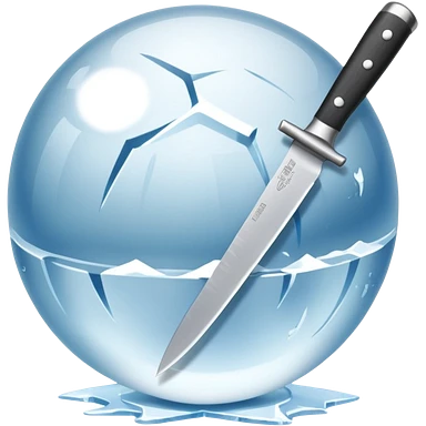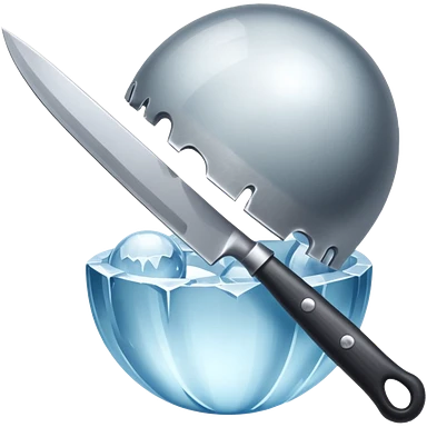 The knife is only visible from above, its tip showing from behind the ice ball. emoji