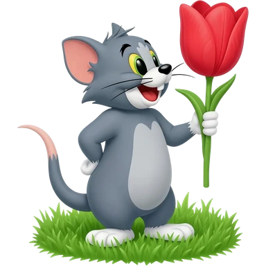 Mouse Jerry hold hand flower emoji