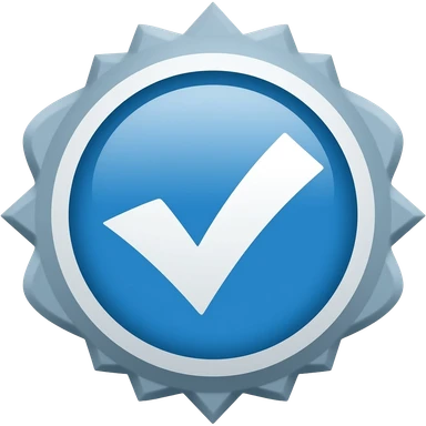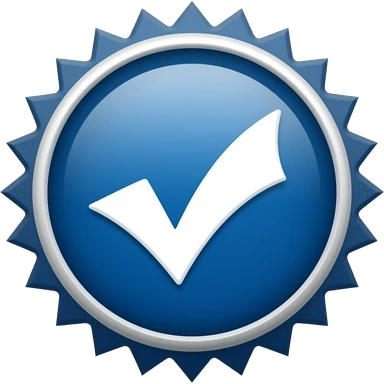 Logo de verificación circular en color azul y blanco, bordes con puntas emoji