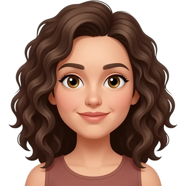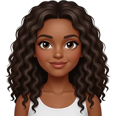 mulher morena, cacheada, rosto amendoado emoji