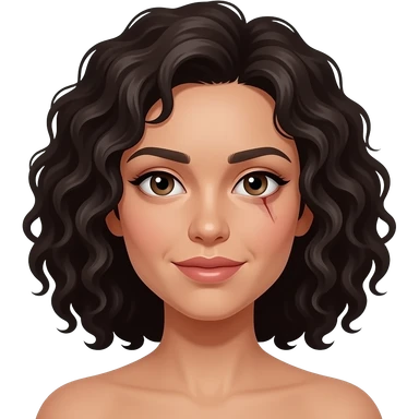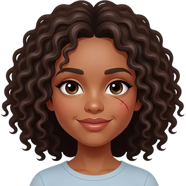 mulher morena, cacheada, rosto amendoado, com cicatriz na pálpebra direita emoji