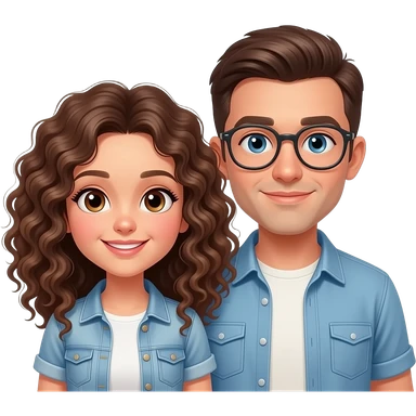 menina cacheada com namorado que usa óculos redondo emoji
