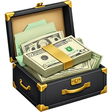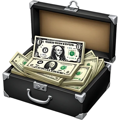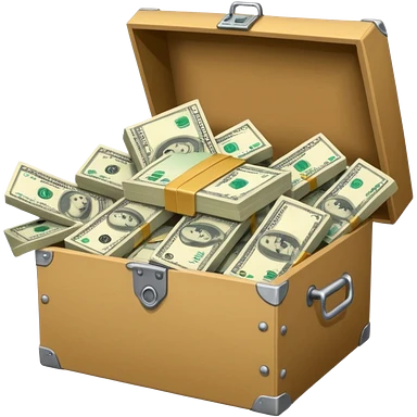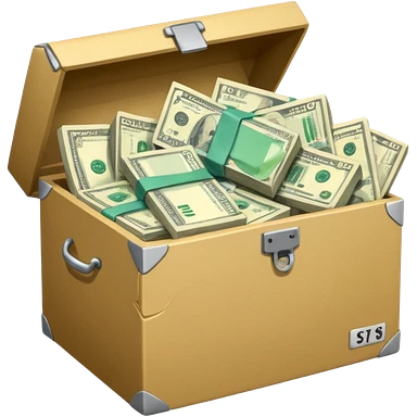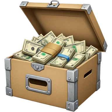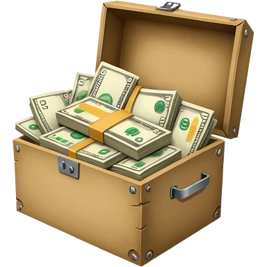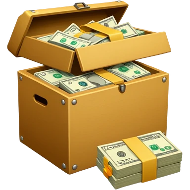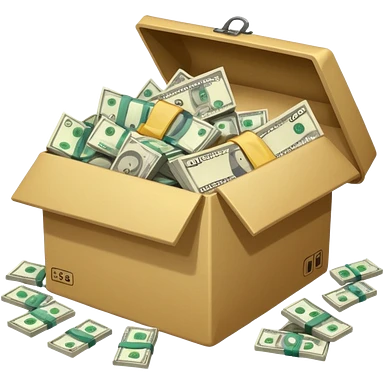 a bunch of miscellaneous stuff in a box, with a small pile of cash note on the side, indicating that this box is for sale emoji