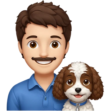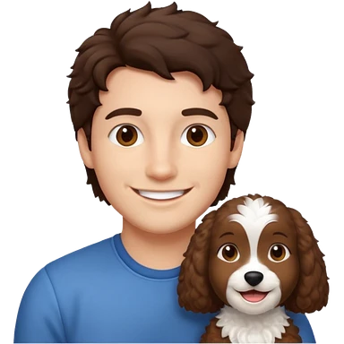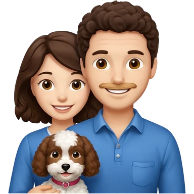 emoji of brunette man, brunette woman and cockapoo emoji