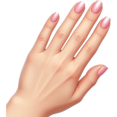 A cute emoji of a feminine hand with glazed nails in pearl pink, a highlighter shimmer on the back of the hand, golden sparkle particles floating around the fingers, beauty lifestyle aesthetic emoji