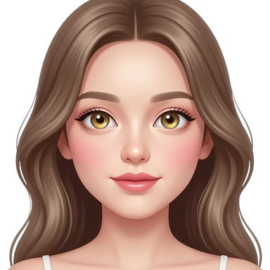 A cute emoji face with bright colored dewy glowing skin, subtle pink blush, highlighted cheekbones with gold shimmer, sparkling eyes, soft ivory skin tone, K-beauty inspired, radiant and luminous expression, with long hair emoji