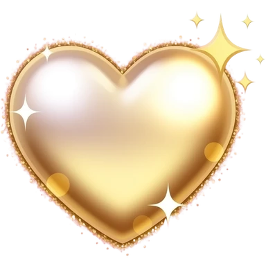 A sparkling emoji of a shimmering heart shape with a pearl and gold gradient fill, golden sparkle particles surrounding it, soft pink glow on the edges, glittery and luminous, beauty brand aesthetic emoji
