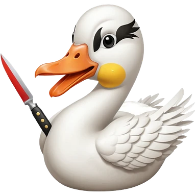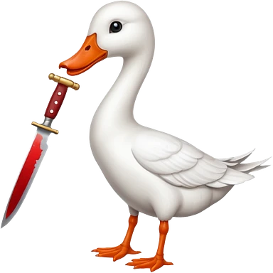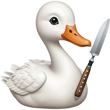 Duck holding knife in mouth but make it a white goose emoji