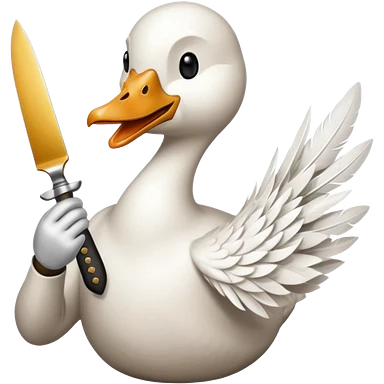 Duck holding knife but make it a white goose emoji