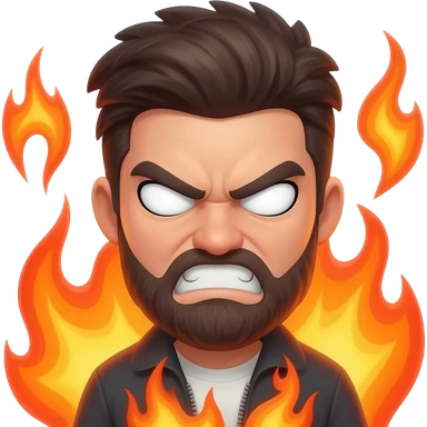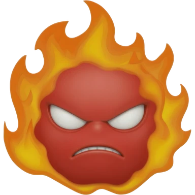 an angry red emoji with white eyes and flames around it. make him truly angry. emoji