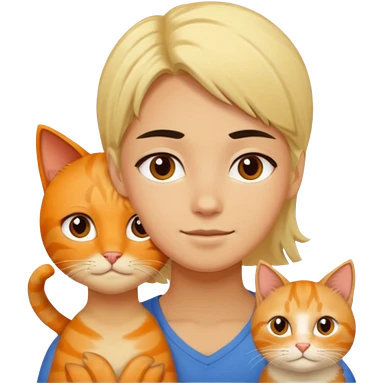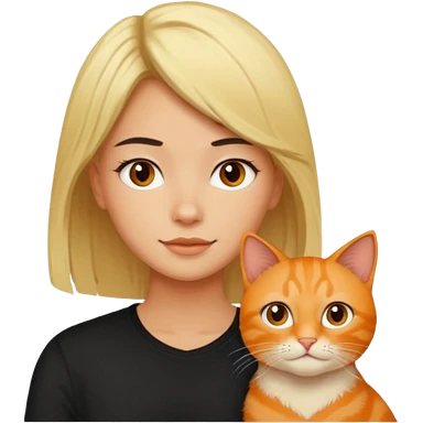 There is a blonde girl, a ginger cat, and a black-haired guy. emoji