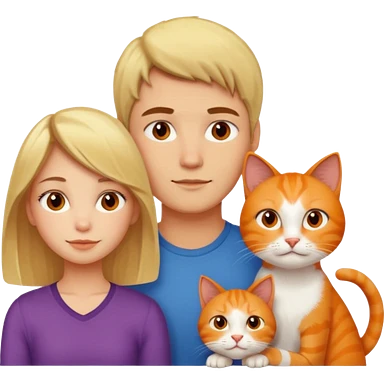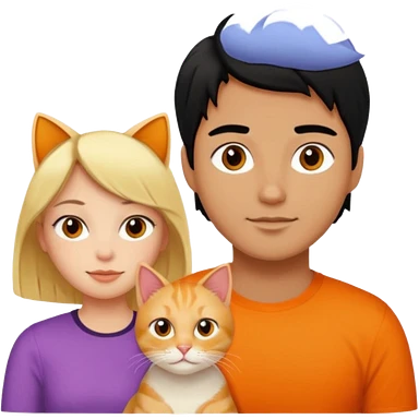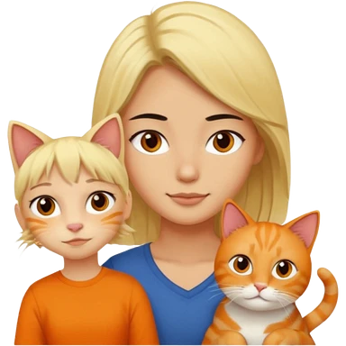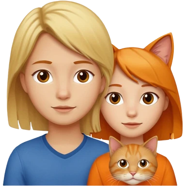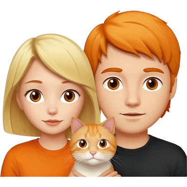 A blonde girl, a ginger cat, and a guy with black hair. emoji