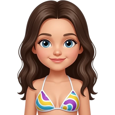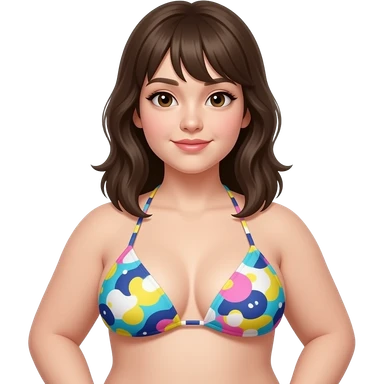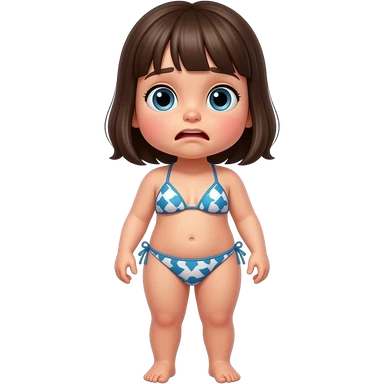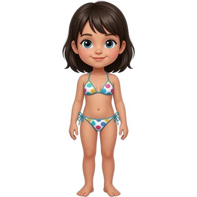 full-bodied standing slim young child girl wearing bikini and hungry emoji