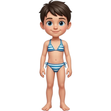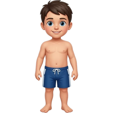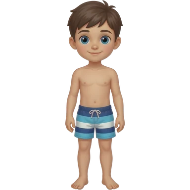 full-bodied standing slim young child boy wearing shorts swimsuit emoji