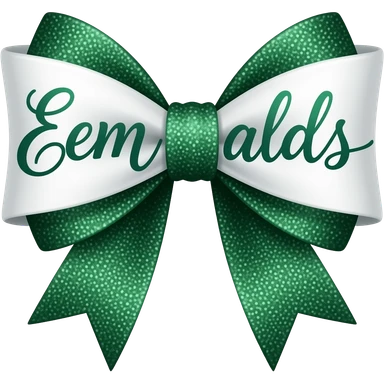 use this bow in white with sparkly dark emerald green and add the words emer alds in calligraphy on the left emoji