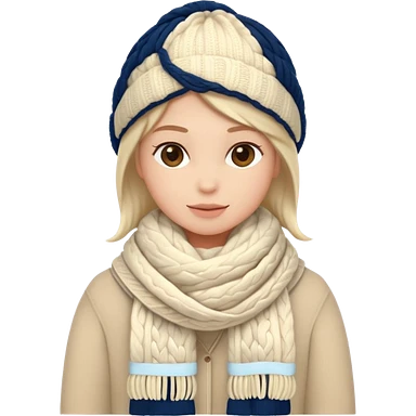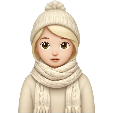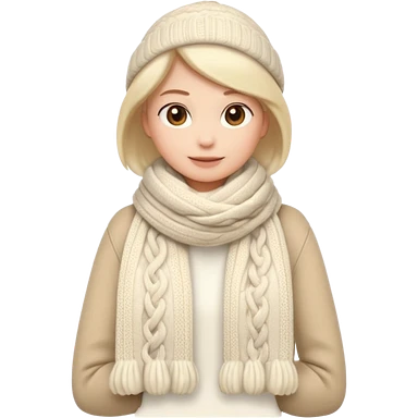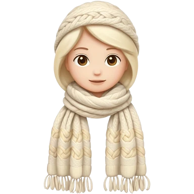 cute soft-matte emoji of an ivory scarf with thick cable-knit patterns, light beige accents, cozy and fluffy winter texture, gently folded shape, minimal details, warm and soft shading emoji