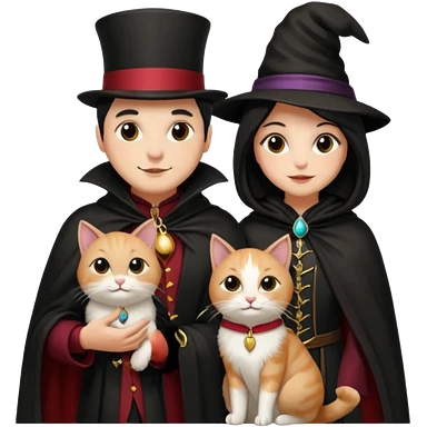 magician couple and their pet cat emoji