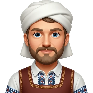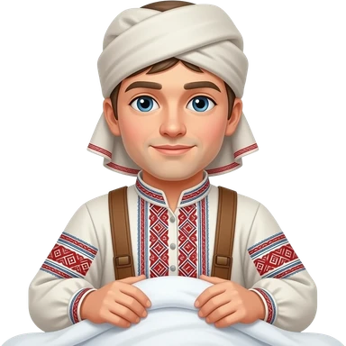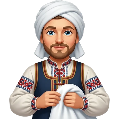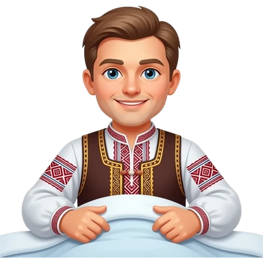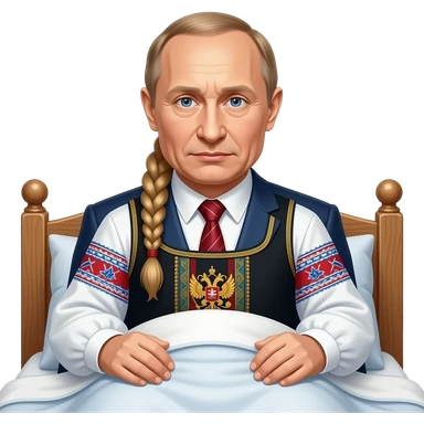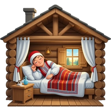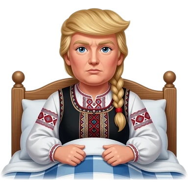 a russian peasant Trump in national russian suit waking up in his house emoji