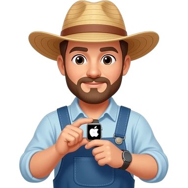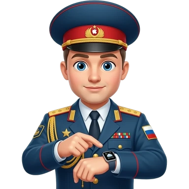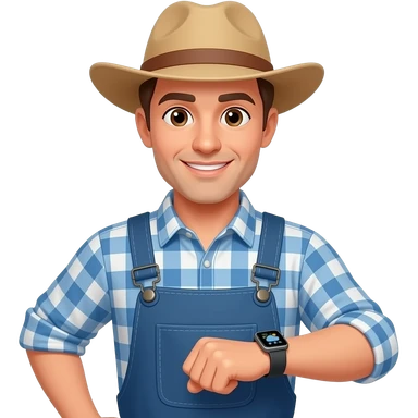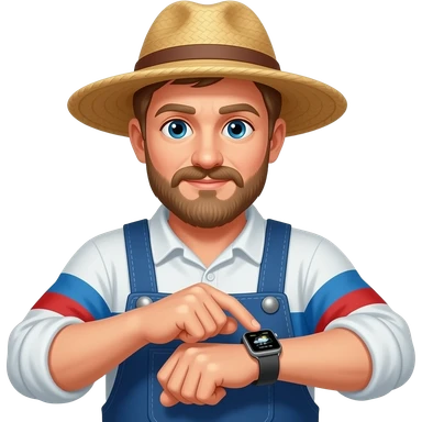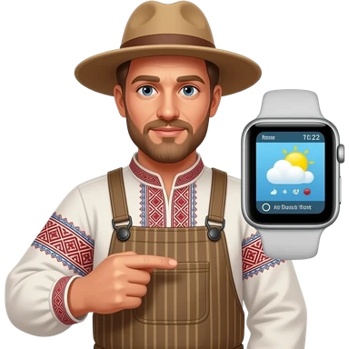 a russian farmer in national suit looking to apple watch for weather forecast emoji