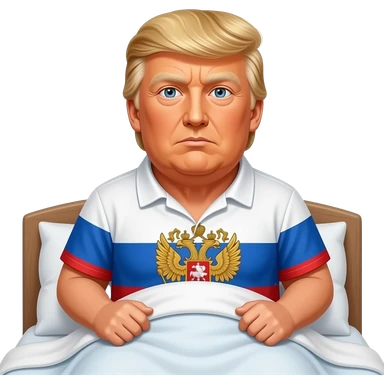 a russian peasant Trump in national russian shirt waking up in his house emoji