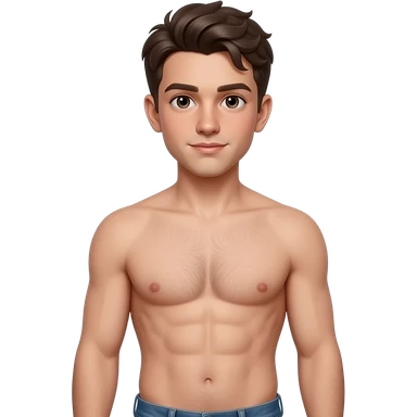 The beautiful young boy 20-22 years old with abs , with naked torso , he has He has natural body hair on his arms, legs, and a faint line of hair below his navel. emoji