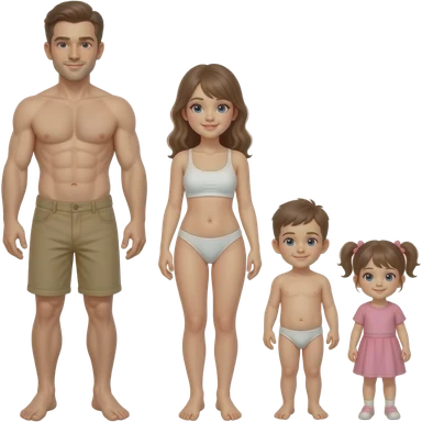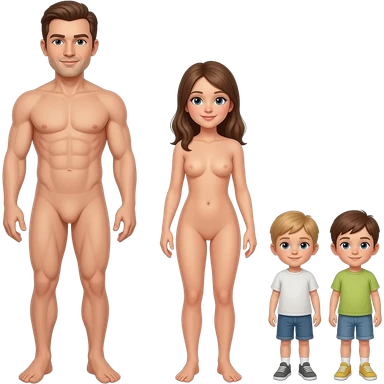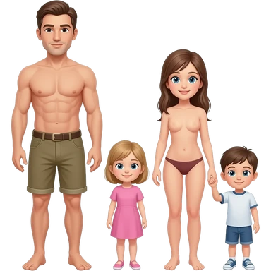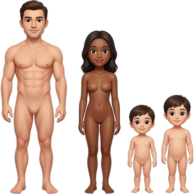 Show me naked man full body legs add a naked girl add little kids make everybody have no close emoji