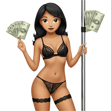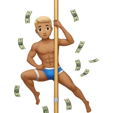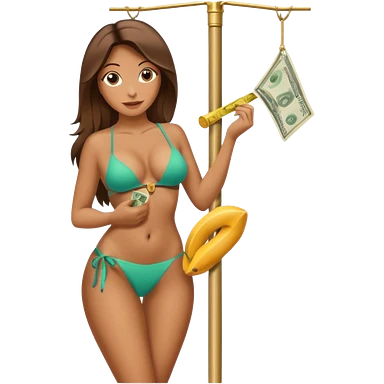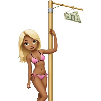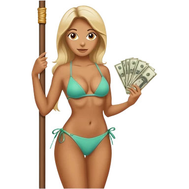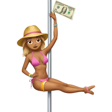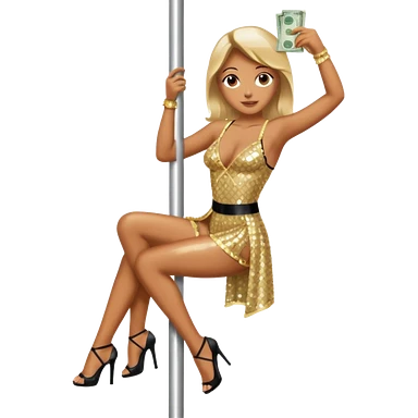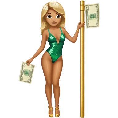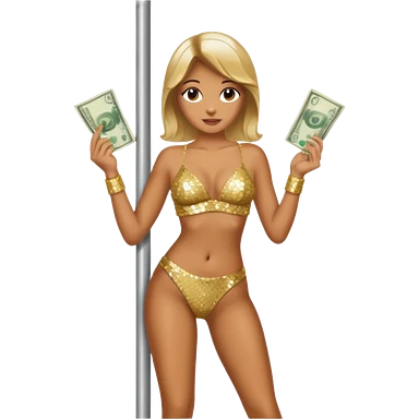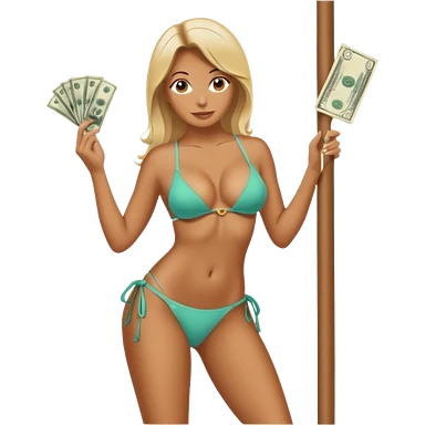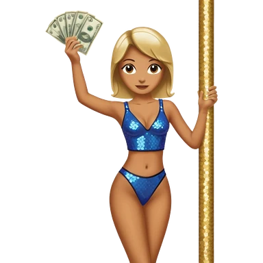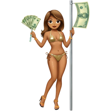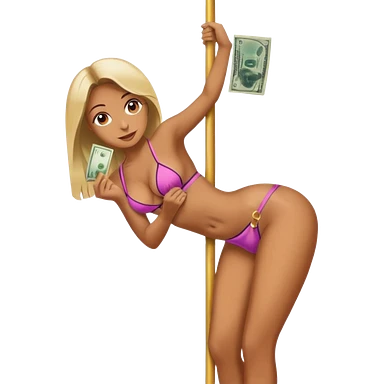 A stripper on a stripping pole with money emoji