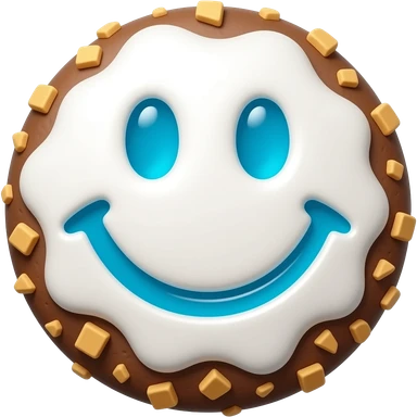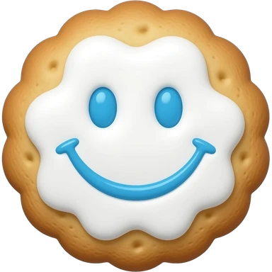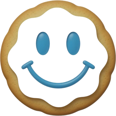 A cookie with normal dough with white icing and a blue smiley face emoji