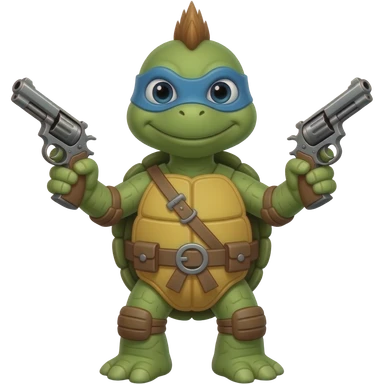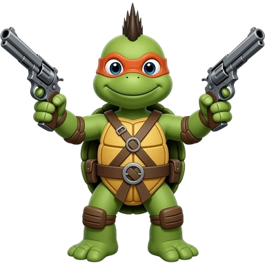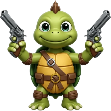 A yellow bellied slider turtle with a Mohawk holding two pistols emoji