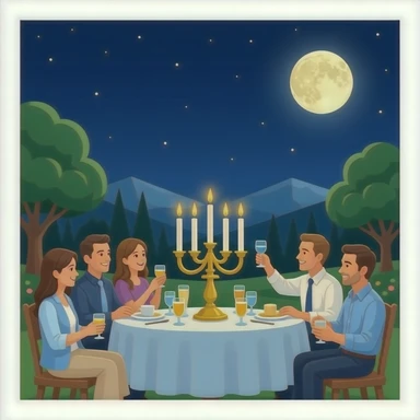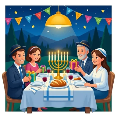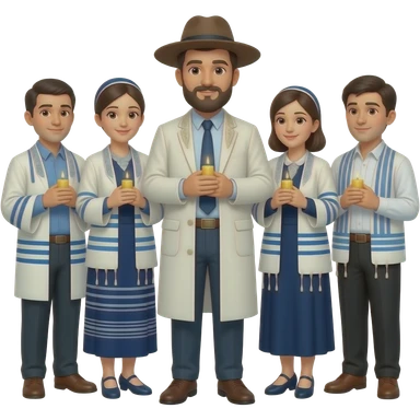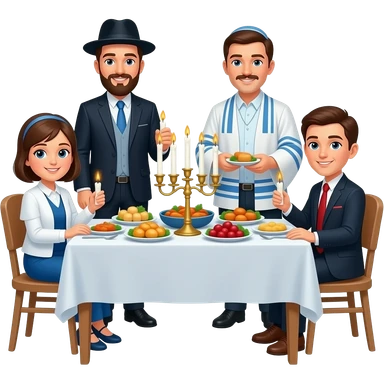 "Realistic scene of a Jewish Shabbat, Torah reading ceremony inside a synagogue. Jewish people praying and reading the Torah scroll. In the background window, a symbolic transition showing Friday sunset merging with a starry Saturday night sky. Photorealistic, highly detailed, no text." emoji