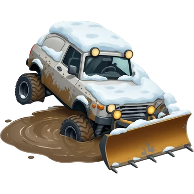 🏔️ Off-Road Emergency 🚜 Mudslide: Çamur deryasına saplanmış ve yan yatmış bir 4x4 arazi aracı. Avalanche: Kar yığını altında kalmış bir kar küreme aracı. emoji