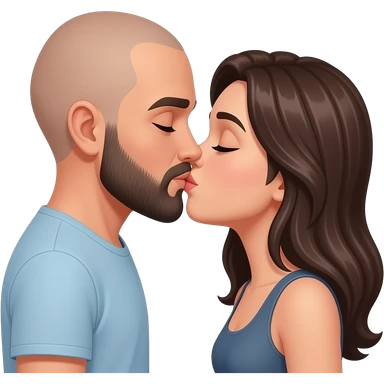 The guy on the right should have head bald fully shaved with black hair goatee. Make kissing romantically emoji