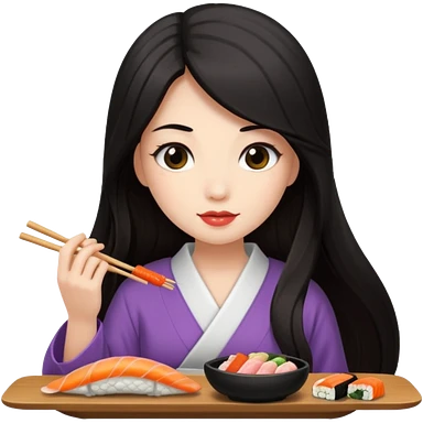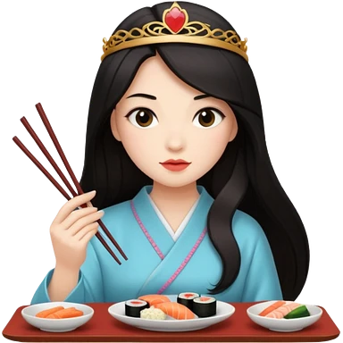 czarnowłosa ksieżniczka w dlugich wlosach je sushi emoji
