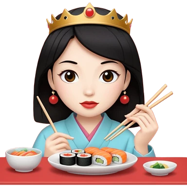 czarnowłosa ksieżniczka je sushi emoji