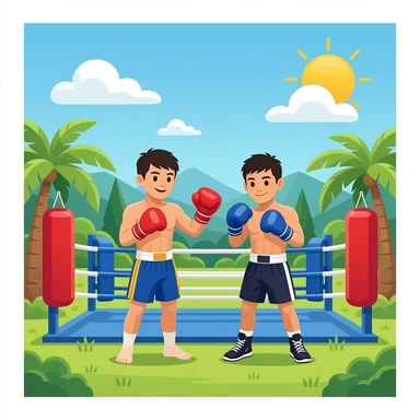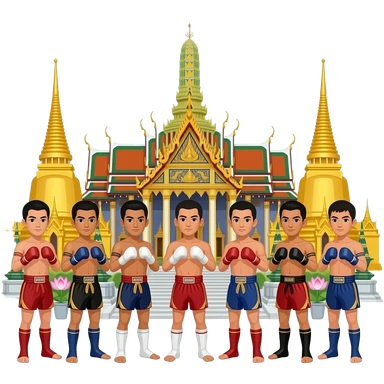 Thai boxers with red shorts and red t shirts in front of grand palace bangkok emoji