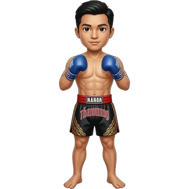 Thai boxer front kick teep red shorts and t shirt with msa logo emoji