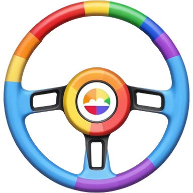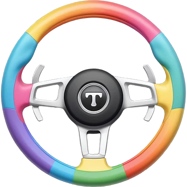 steering wheel with transgender pride flag colors and strifes , fluffy emoji