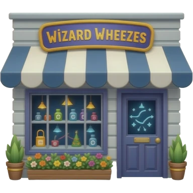 Weasleys’ Wizard Wheezes shop emoji, Apple style, clean 3D, soft gradients, whimsical colorful magic shop, striped facade, playful details, minimal icon, centered, white background, high detail emoji
