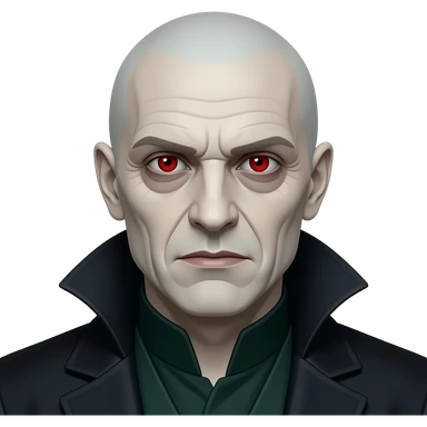 Lord Voldemort emoji, Apple style, clean 3D, soft gradients, pale bald man, slit nose, red eyes, cold expression, minimal icon, centered, white background, high detail emoji