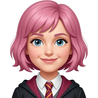 Nymphadora Tonks emoji, Apple style, clean 3D, soft gradients, young woman, short colorful hair (pink), playful expression, minimal icon, centered, white background, high detail emoji