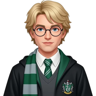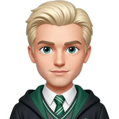 Draco Malfoy emoji, teenage boy age 15–16, Apple style, clean 3D, soft gradients, pale blond slicked-back hair, sharp features, Slytherin green accents, minimal icon, centered, white background, high detail emoji