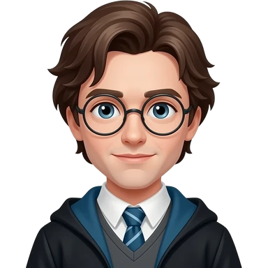 Harry Potter emoji, Apple style, clean 3D, soft gradients, teenage boy age 15–16, messy black hair, round glasses, lightning scar, Gryffindor accents, minimal icon, centered, white background, high detail emoji