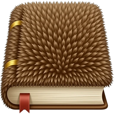 book, viewed from the page edge (page block side), thick brown furry-covered book, soft fur texture on the cover edges emoji