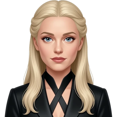 Narcissa Malfoy emoji, Apple style, clean 3D, soft gradients, adult woman, elegant aristocratic features, pale skin, long straight blonde, part of the hair is pinned back, the strands at the neck are black, sleek luxurious black outfit, high detail emoji