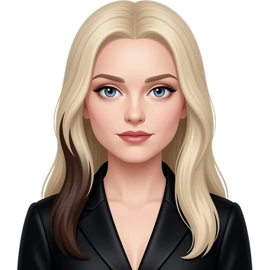 Narcissa Malfoy emoji, Apple style, clean 3D, soft gradients, adult woman, elegant aristocratic features, pale skin, long straight blonde hair with dark underlayer (half-blonde half-dark), sleek luxurious black outfit, high detail emoji