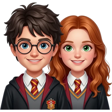 James and Lily Potter emoji, Apple style, clean 3D, soft gradients, young adults, James messy black hair and glasses, Lily long red hair and green eyes, warm expressions, minimal icon, centered, white background, high detail emoji