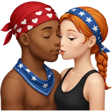 Two people naked kissing, brown man with bandana, white girl ginger hair emoji