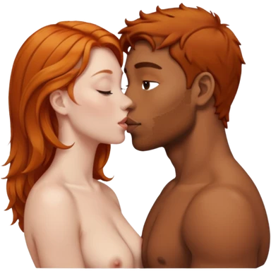 Two people naked kissing, brown man, white girl ginger hair emoji